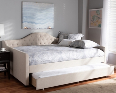 That's how we build the queen size bed. White twin trundle bed with storage. Elegant and versatile, the daybed fuses the functions of a sofa and bed into one compact piece. Beige fabric upholstered queen size daybed with trundle by baxton studio. Everyroom celena queen linen upholstered bed frame in grey.